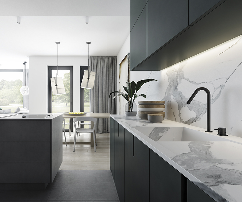Top cucina in Laminam Bianco Statuario Venato Opaco