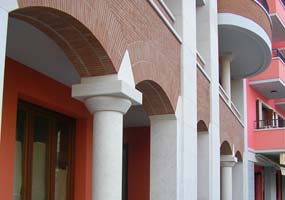 Scala a chiocciola in marmo rosa asiago spazzolato e anticato
